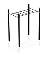 Простая конструкция для выполнения физических упражнений. Опорные стойки и перекладины в виде рукохода. Применений представленного спортивного комплекса много, можно выполнять упражнения на укрепление мышц пресса, развивать бицепсы, трицепсы и дельтовидную мышцу.